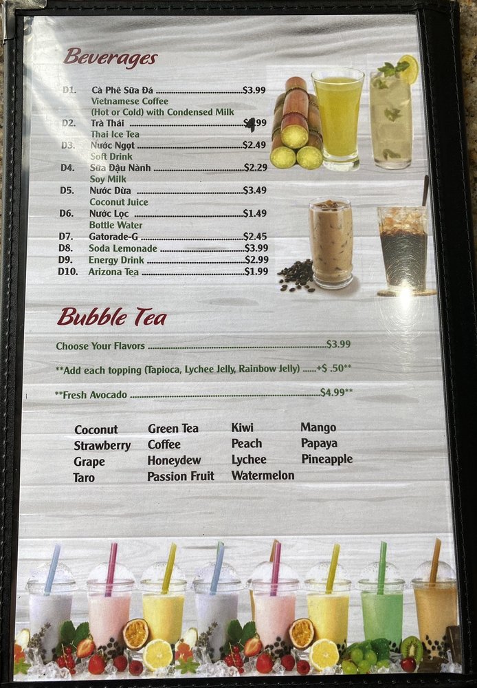 Vietnamese bubble tea with selection of flavors: coconut, coffee, avocado, and more. Includes tapioca pearls.