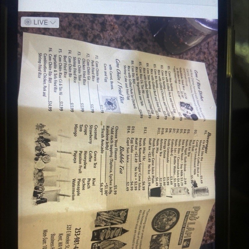 Welcome to Pho Lam, a hidden gem nestled at 320 E Meeker St Unit 106 in Kent, WA. Specializing in authentic Vietnamese cuisine, this cozy eatery excels in delivering comfort and flavor. The star of the show is their pho, renowned for its deeply flavorful broth, which guests rave about as one of the best in Washington. Diners appreciate the generous portions, with large combinations and ample toppings that leave you satisfied without feeling overwhelmed by choices.